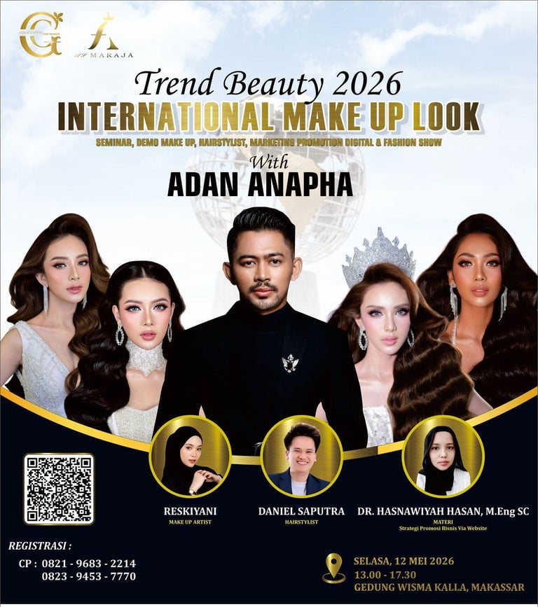 Seminar kecantikan terbesar tahun ini, menghadirkan ADAN ANAPHA. Konsultasi gratis, demo make up live, hairstylist, pengenalan bisnis digital untuk MUA, dan Fashion Show.